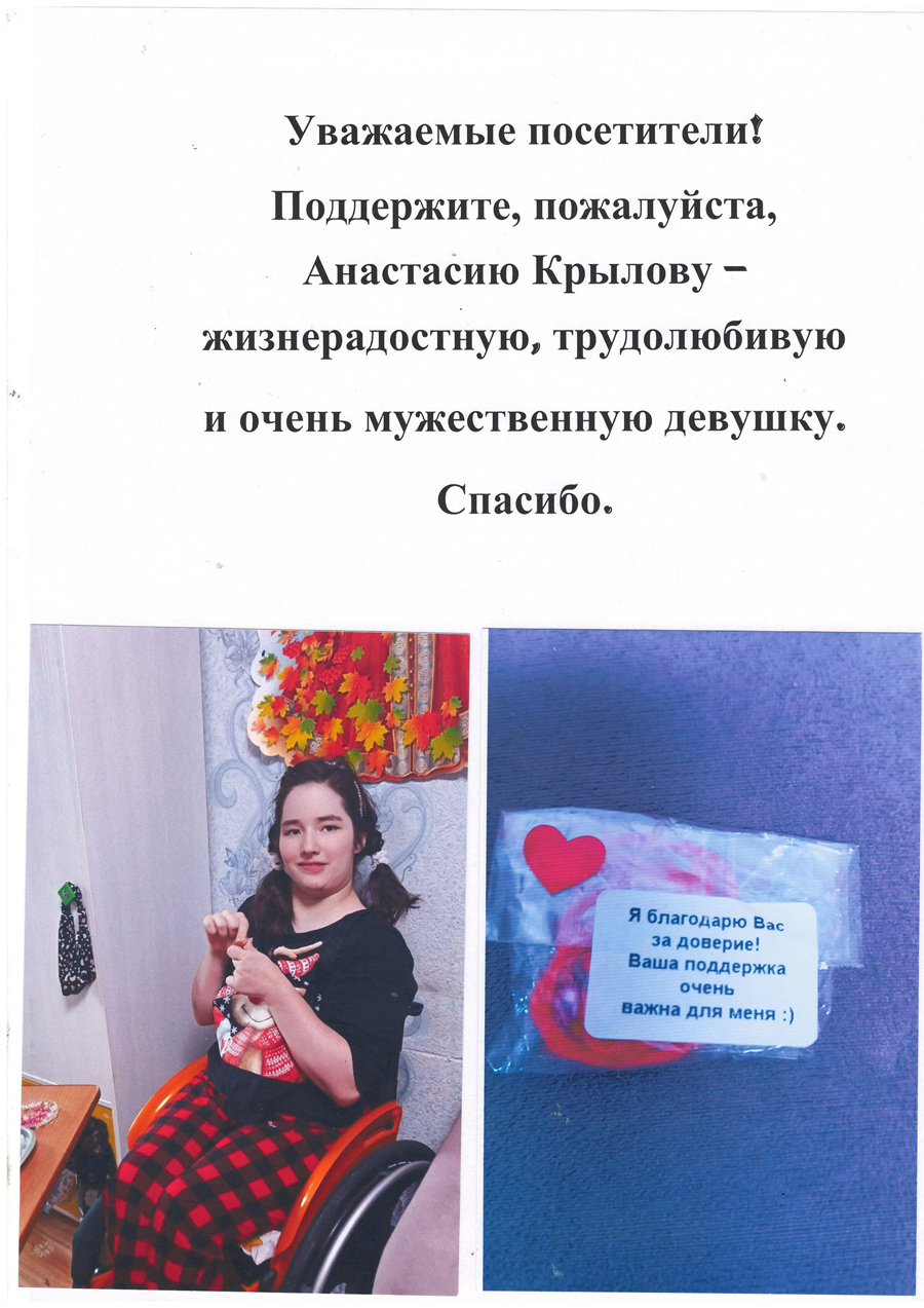 Мы можем выразить благодарность Насте за ее труд и поддержать ее в этом важном шаге. Пусть ее участие в конкурсе станет примером силы духа, целеустремленности и красоты, которая не зависит от физических возможностей.