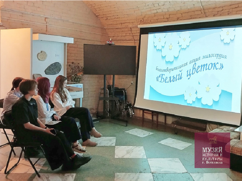 Ученики 8 «А» класса школы №17, приняли участие в республиканской благотворительной акции «Белый цветок» в поддержку тяжелобольных детей Удмуртии, время проведения которой со 2 ноября по 19 декабря. Научный сотрудник Екатерина Чубукова познакомила ребят с историей этой доброй и нужной акции, подчеркнув, что благотворительность всегда была основой русского общества. Праздник добра и милосердия, впоследствии охвативший весь мир, впервые был проведен в начале XX века.