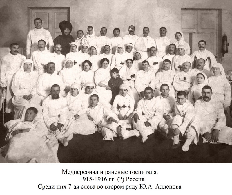 Алленова Ю.А. родилась в Воткинске в 1880 г. и провела детство в большом просторном доме, стоявшем на берегу р. Вотки в Заречной части заводского посёлка. Похоронив своего жениха, погибшего во время боевых действий на Дальнем Востоке, Юлия Андреевна приняла решение никогда не выходить замуж, свято чтить память своего любимого. С этого серьёзного решения началось её самоотверженное служение. Юлия Алленова становится членом Петроградской Елисаветинской общины сестёр милосердия Красного Креста. Вступление в неё сопровождалось рядом обстоятельств и условий, в том числе и безбрачием.